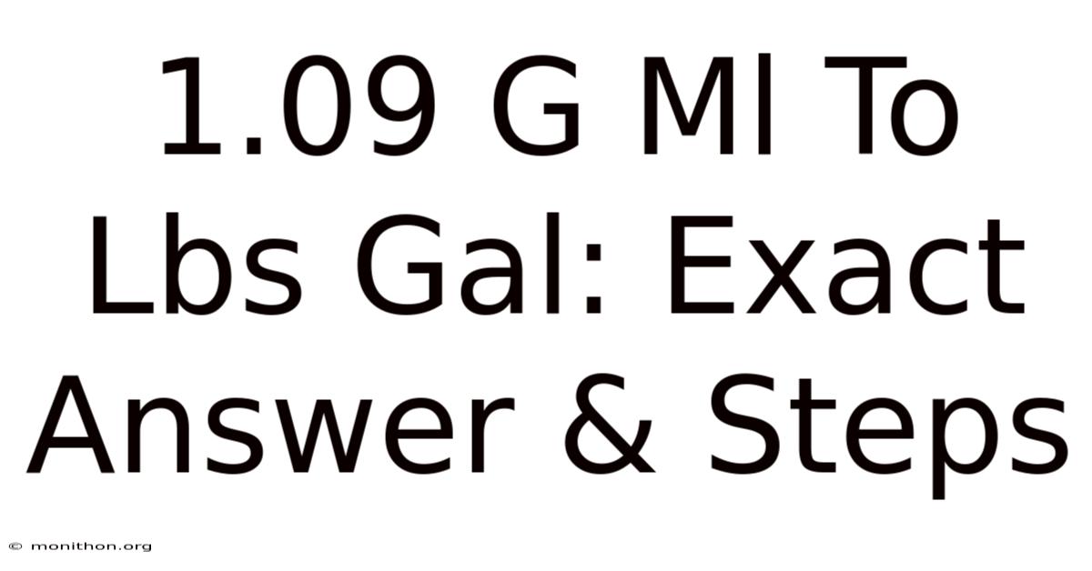 Let’s say you’re following a European recipe for a delicate syrup. On top of that, it calls for a liquid with a density of 1. 09 grams per milliliter. Or maybe you’re topping off your classic car’s coolant, and the manual specifies a mixture ratio by weight, but your jug is labeled in pounds per gallon. You see that number—1.09 g/ml—and your brain just… glitches. It’s a density. But what does it mean in the units you actually hold in your hand? How many pounds per gallon is that, really? Worth adding: it’s not just a math problem. It’s a translation problem between two completely different measurement languages. And getting it wrong can mean a ruined batch of frosting or an overheating engine. So let’s fix that. Right now The details matter here. Which is the point..