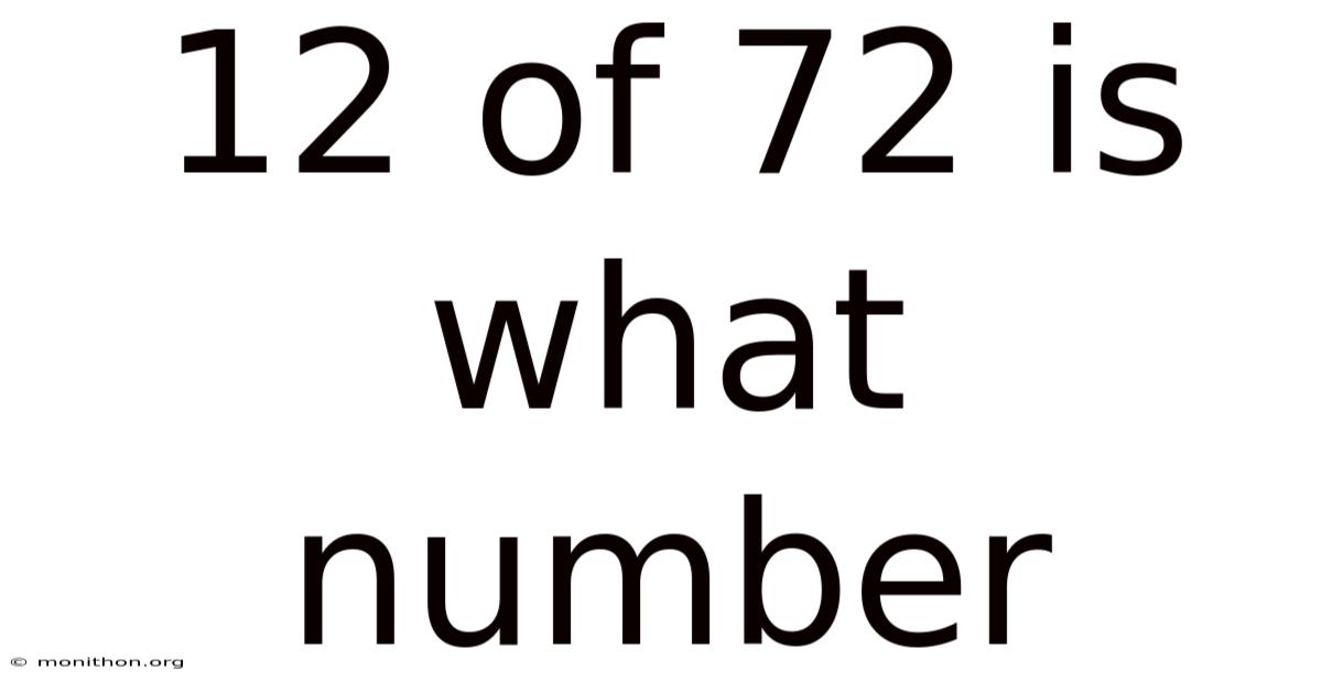 The question "12 of 72 is what number" can be interpreted in several ways, but fundamentally, it's asking about the relationship between 12 and 72. Specifically, it's asking what value 12 represents as part of 72. This can be expressed as:
