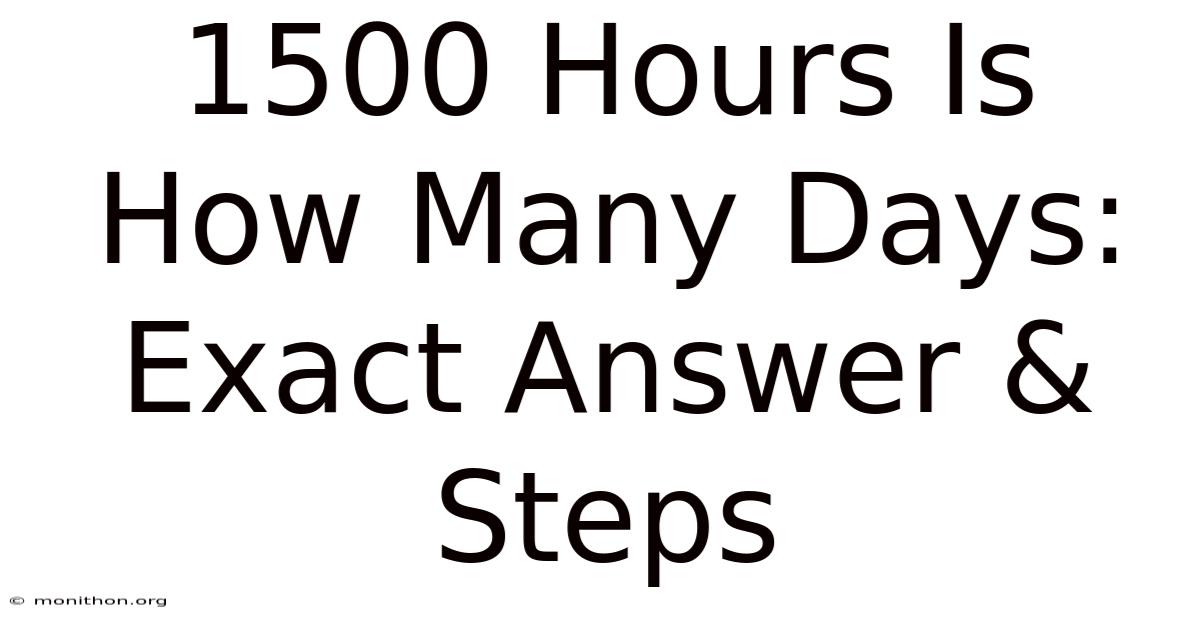 So let’s cut through the noise. The short answer is right there in the math: 1500 hours is 62.And 5 days. Now, that’s two full months, plus a single day and a half-hour slice of another. But that number alone is almost meaningless. That's why the real value—the part that sticks in your brain—comes from what you do with those 62. 5 days. How you frame them. What you compare them to. That’s where the clarity lives But it adds up..