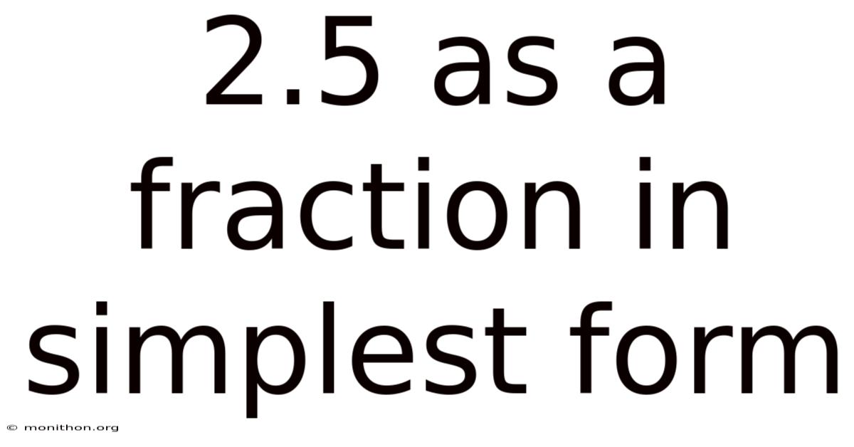 Thus, 2.5 as a fraction in simplest form is (\frac{5}{2}).