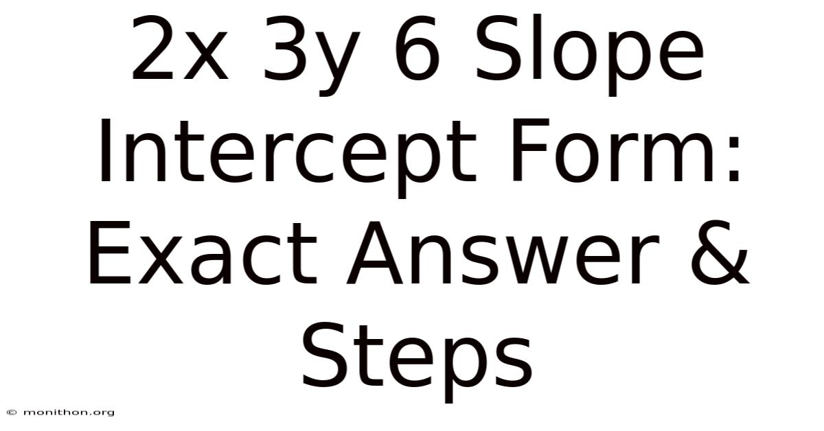Ever stared at an equation like 2x + 3y = 6 and thought, “Why does this look like a puzzle I never asked to solve?You’re turning a formal, rigid statement into a clear, ready-to-use blueprint. That’s the whole point of converting 2x + 3y = 6 to slope-intercept form. Day to day, that’s the standard form of a line—perfectly valid, but not exactly eager to tell you its slope or where it hits the y-axis. But ” You’re not alone. Even so, it’s not just an algebra chore; it’s a translation. Let’s actually do that translation, and more importantly, understand why it’s worth your time That's the part that actually makes a difference..
