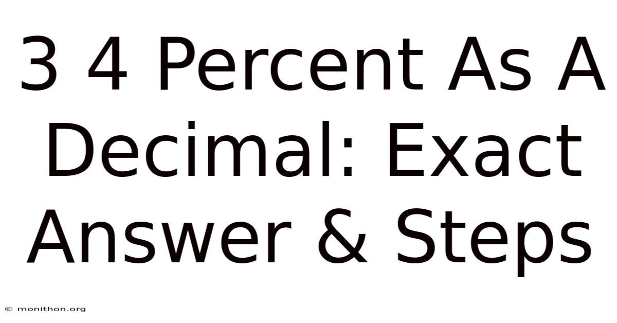 Ever stared at a spreadsheet, saw “0.75 %” and wondered if you’d just misplaced a decimal point? Even so, you’re not alone. But turning a fraction‑style percent like 3 ⁄ 4 percent into a clean decimal is one of those “real‑world math” moments that pops up in budgeting, nutrition labels, and even DIY home projects. The short version is: 3 ⁄ 4 % equals 0.0075 as a decimal. Sounds simple, but the steps and the why behind it are worth a quick dive Simple, but easy to overlook. And it works..