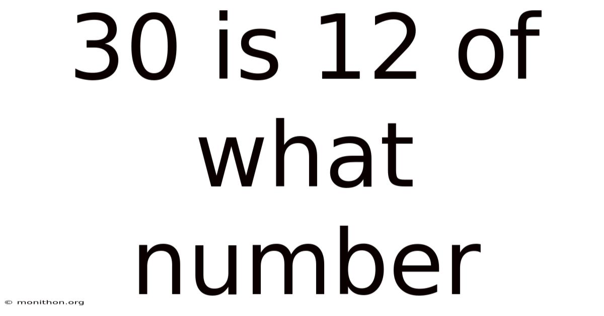 - A: While the formula is straightforward, you can also think of it as: "30 divided by 12%." Since dividing by a percentage is the same as multiplying by 100 and then dividing by the percentage number, you can calculate: (30 × 100) ÷ 12 = 3000 ÷ 12 = 250. This is essentially the same mathematical process, just performed in a slightly different order.