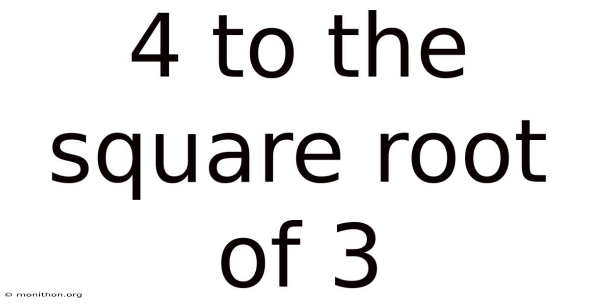 Calculating "4 to the square root of 3" involves understanding the base (4), the irrational exponent (√3), and applying the rules of exponentiation. The result, approximately 8.77496438739, demonstrates the power and sometimes complexity of combining different mathematical operations. This expression serves as a practical example of how fundamental concepts like exponents and roots interact, especially when dealing with irrational numbers. While the exact value remains an irrational number, its numerical approximation is readily accessible with modern tools. Mastering such calculations builds a stronger foundation for tackling more complex mathematical challenges encountered in science, engineering, and higher mathematics. The ability to manipulate and understand these types of expressions is crucial for progress in fields requiring precise quantitative analysis and modeling. Ultimately, the seemingly simple calculation of 4^(√3) highlights the profound beauty and power inherent in the mathematical framework that governs our universe.