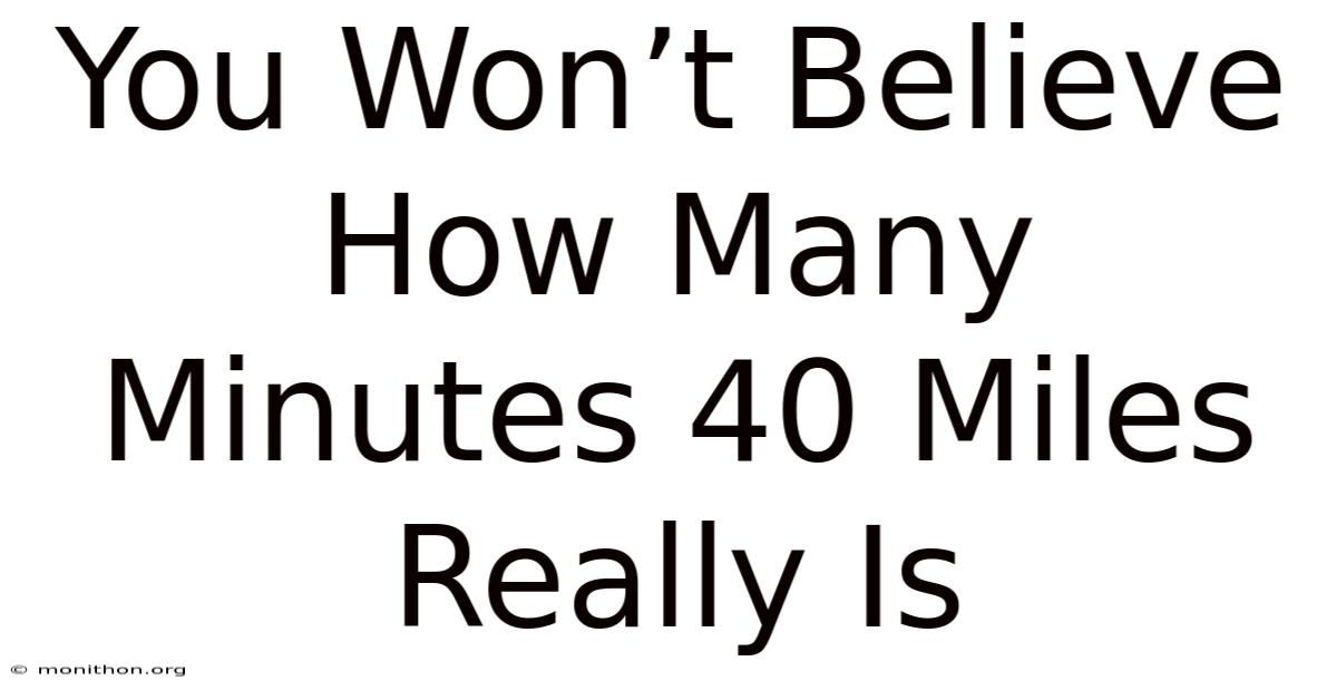 The next time you ask, “How long does 40 miles take?” remember: it’s not a fixed number. Your speed, route, and even the weather can change the answer. But with a little math and the right tools, you’ll always know the right time to arrive The details matter here..