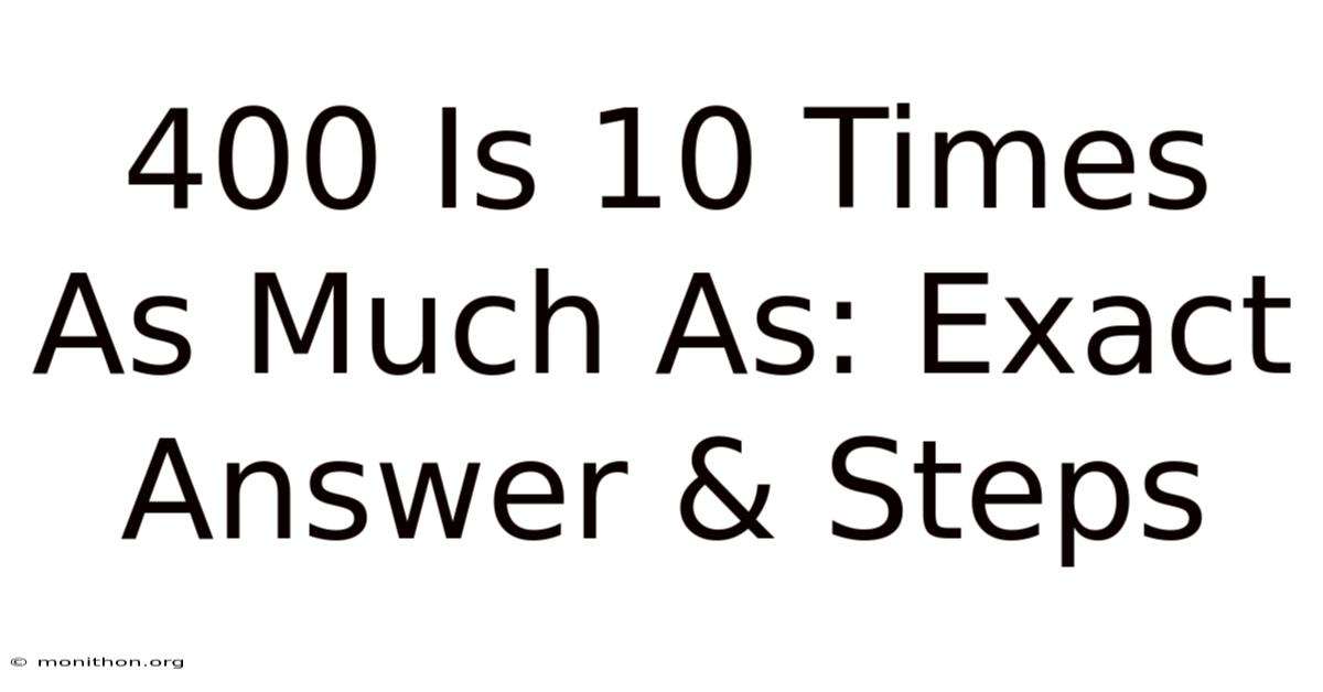 We've all seen it: a number like 400, and the simple statement "400 is 10 times as much as X.And " It sounds basic, almost trivial. This isn't just elementary arithmetic; it's a lens for seeing relationships between quantities, a tool for making smarter decisions, and a key to unlocking deeper numerical literacy. But beneath that simplicity lies a fundamental concept that underpins everything from budgeting your grocery bill to understanding compound interest, scaling a business, or even interpreting news headlines about economic growth. Let's strip away the simplicity and explore why recognizing that 400 is 10 times something else is genuinely powerful Which is the point..