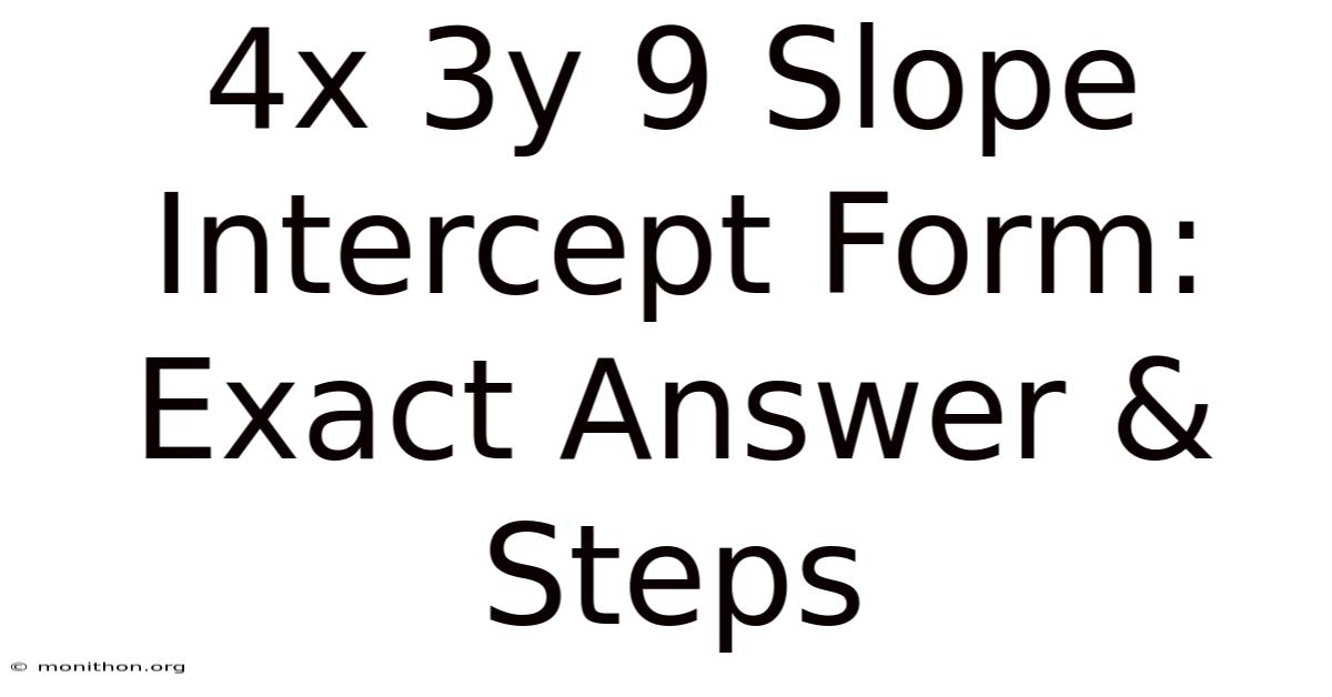 When an equation is stuck in standard form like 4x + 3y = 9, you can't immediately see either of those values. That's why converting to slope-intercept form is so useful — it makes the math visual Not complicated — just consistent. But it adds up..