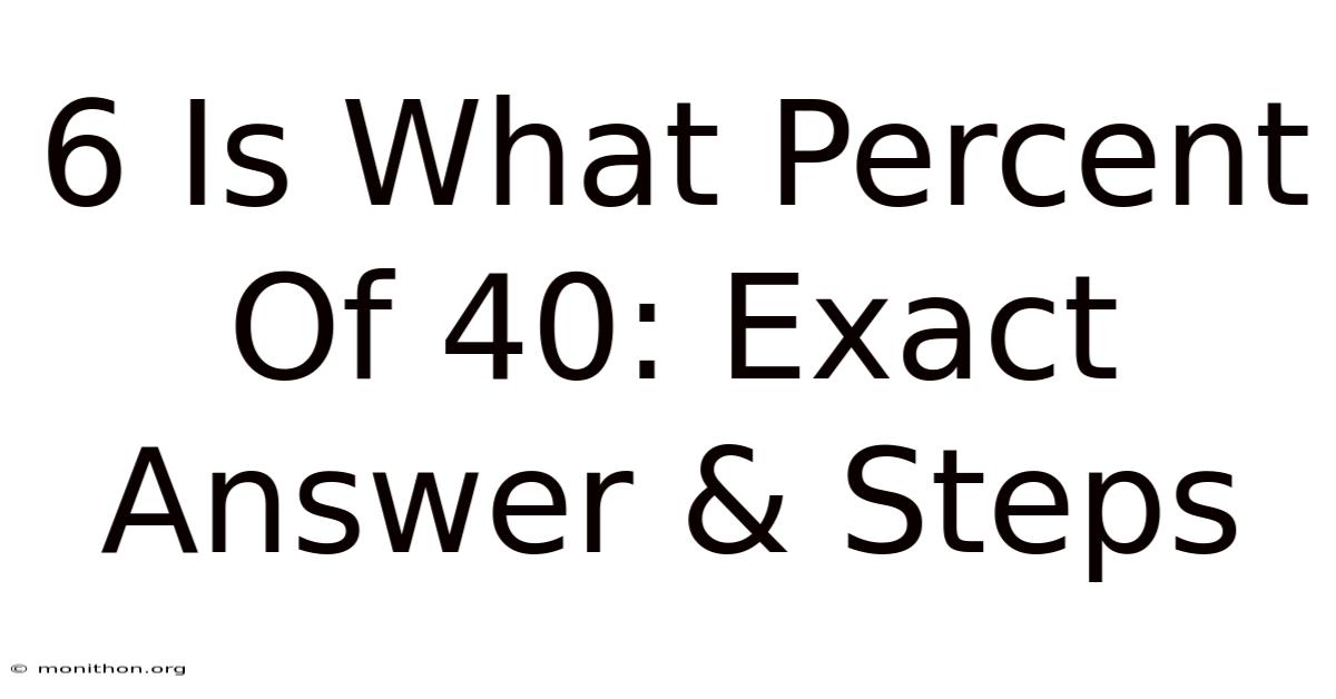 Ever been at a restaurant, staring at the bill, trying to figure out how much to tip? In practice, or standing in a store, wondering if that 30% discount is really a good deal? Percentages are everywhere. But how many of us really understand how they work? Worth adding: let's talk about one specific percentage question: "6 is what percent of 40? They're in our finances, our grades, our weather forecasts, and even in our coffee orders. " It seems simple, right? But understanding the answer reveals a lot about how percentages work in our daily lives.