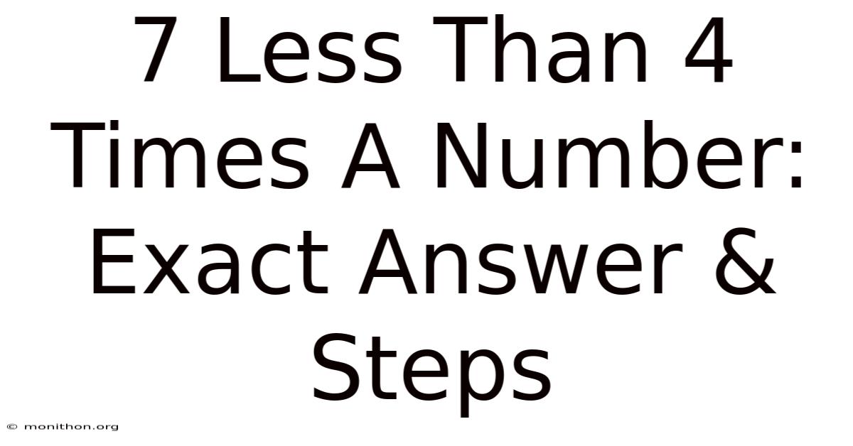 At its core, this phrase is just an algebraic expression. Practically speaking, it describes a relationship between numbers without giving you the actual numbers. Here's how it works: "4 times a number" means you take some unknown value, call it x, and multiply it by 4. Then, "7 less than" that means you subtract 7 from the result. So, the whole thing becomes 4x - 7.