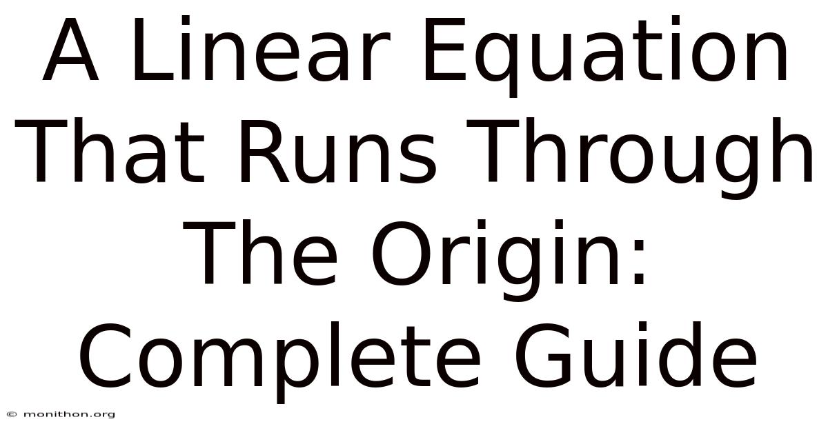A linear equation that runs through the origin is simply a straight line that passes through the point (0, 0) on the coordinate plane. The general form is: