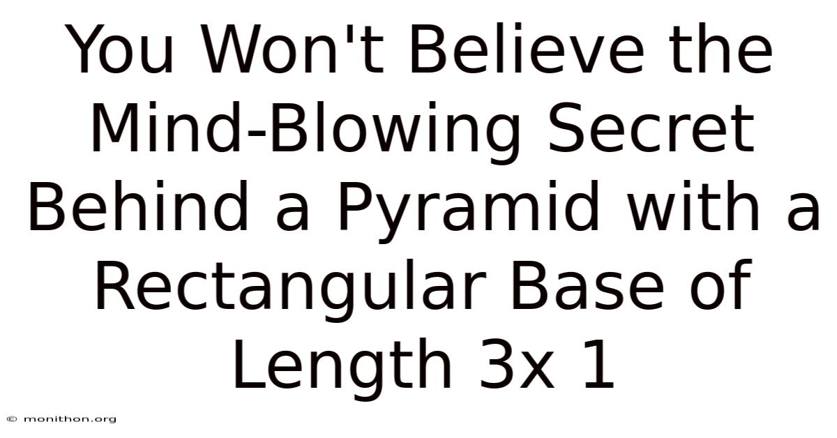 Ever tried to picture a pyramid with a rectangular base and wondered how all the measurements actually work? You're not alone. But that's totally a thing. Practically speaking, most people think of pyramids as those perfect, symmetrical structures in Egypt — but in math and geometry, they can have all kinds of bases. A rectangular base? And once you understand how it's built, it actually makes a lot of sense It's one of those things that adds up..