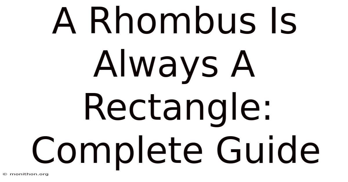 The key to answering “Is a rhombus always a rectangle?” lies in the definition of a rectangle: a quadrilateral with four right angles. So, for a rhombus to double‑duty as a rectangle, it must meet both criteria simultaneously The details matter here..