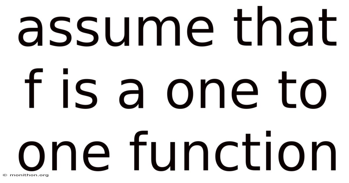 Assuming f is a one-to-one function, you can apply specific methods to confirm its injectivity. Here are the most common approaches: