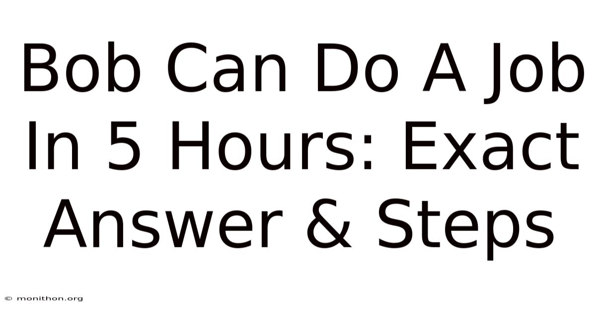 That’s the whole picture. Even so, bob’s five‑hour claim isn’t a mysterious superpower; it’s a simple rate that, when you treat it right, becomes a powerful planning tool. Also, next time you hear “Bob can do it in five hours,” you’ll know exactly how to turn that into a schedule, a budget, and a smoother workflow. Happy calculating!