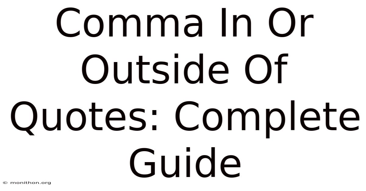 This system, sometimes called "logical punctuation" or "outside style," ties the comma’s placement directly to the quoted material. If the comma is part of what was originally said or written, it stays inside. If it’s part of your sentence framing the quote, it goes outside Surprisingly effective..