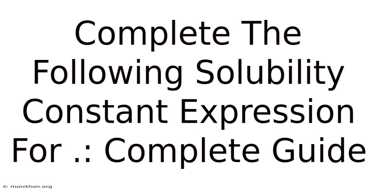So let’s fix that. On the flip side, you know, the stuff in your bones and in kidney stones. Not just for any compound, but for a classic, tricky one that trips everyone up: calcium phosphate. We’re going to walk through completing a solubility constant expression from the ground up. The formula is Ca₃(PO₄)₂ It's one of those things that adds up..