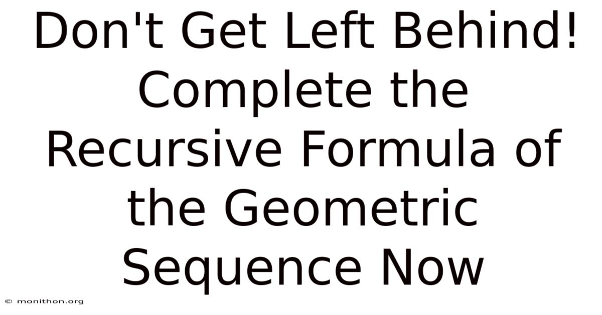 The beauty lies in its versatility. Whether you’re analyzing population growth, calculating compound interest, or modeling exponential trends, the geometric sequence provides a framework that simplifies complex problems. But what exactly defines this structure? How does it differ from arithmetic sequences, and why does it hold such a powerful place in mathematical theory? That said, the answer lies in the recursive formula, a tool that bridges the gap between intuition and precision. This section will dig into the mechanics behind completing the recursive formula, ensuring you don’t just memorize a definition but truly internalize its significance Surprisingly effective..