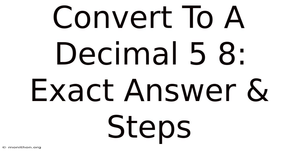 It's easy to look at 5/8 and think "well, 5 is a bit more than half of 8, so it should be around 0.5 or 0.6" — which is true. But the exact answer is 0.That said, 625, not 0. 58 (which would be 58/100) or 0.65 (which would be 65/100) And that's really what it comes down to..