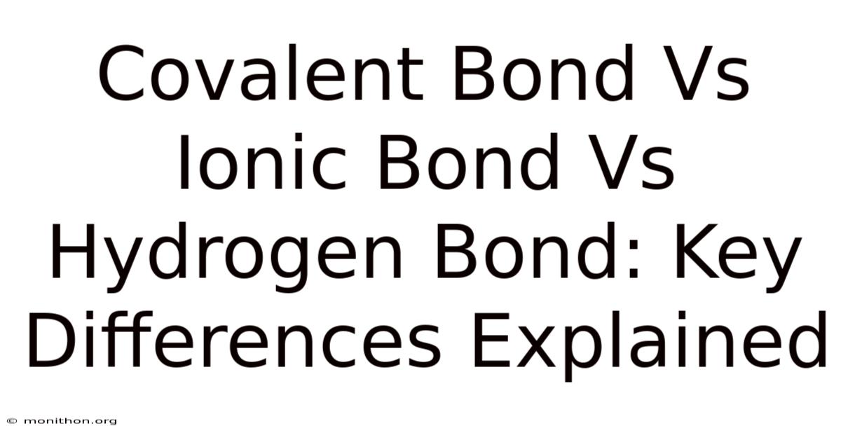 Covalent Bondvs Ionic Bond vs Hydrogen Bond: The Building Blocks of Chemistry