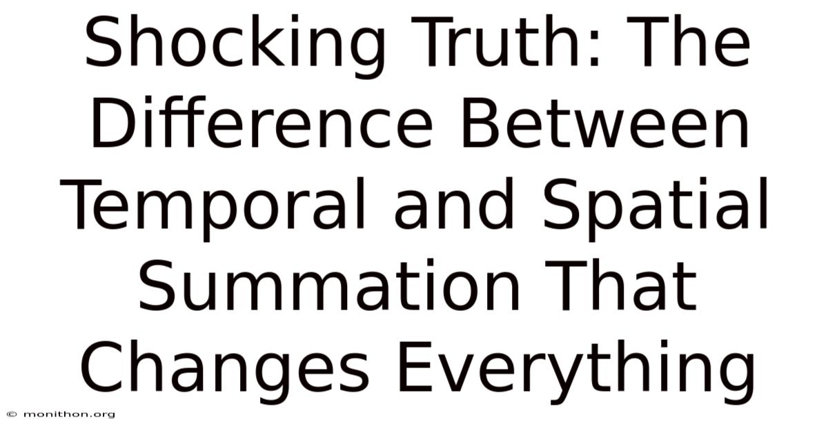 You've probably never stopped to think about how your brain decides if a signal is loud enough to make you jump. Understanding the difference between temporal and spatial summation is like unlocking a secret language your brain uses to process the world. Here's the thing — it's not just about how strong a single signal is; it's about how signals add up over time and space. Yet, every moment, your neurons are locked in an detailed dance of "should I fire or shouldn't I?Because of that, " This decision hinges on a fundamental principle: summation. Let's dive in.