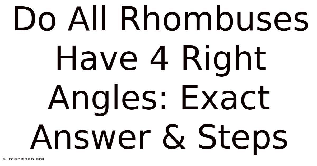 So, do all rhombuses have four right angles? In practice, only the subset that also has right angles is a square. That said, the rest—those with acute and obtuse angles—are true rhombuses. Knowing the subtle difference lets you spot design quirks, solve geometry problems faster, and appreciate the nuance in shapes that surround us. Think about it: the short answer is no. Whether you’re sketching a new logo or measuring a floor tile, keep these checks handy, and you’ll never misclassify a rhombus again Small thing, real impact. That alone is useful..