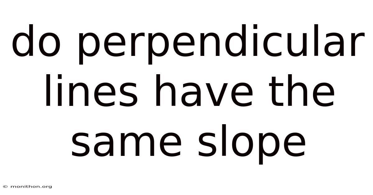 In these cases, the slopes are clearly different, reinforcing the general rule that perpendicular lines do not share the same slope.