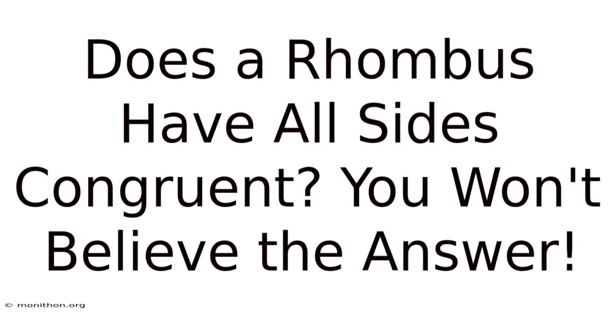 So when someone asks "does a rhombus have all sides congruent," the answer is unambiguously yes — but it's a narrow yes. Only the sides are congruent in a general rhombus, not the angles The details matter here..