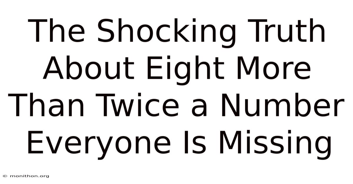 Ever stared at a math problem that reads “eight more than twice a number” and felt your brain do a little back‑flip? In practice, that phrase pops up in everything from middle‑school worksheets to real‑world budgeting, and yet most people never stop to ask what it really signifies. Because of that, you’re not alone. Let’s unpack it, see why it matters, and walk through the steps you actually need to solve it—no fluff, just the stuff that sticks.