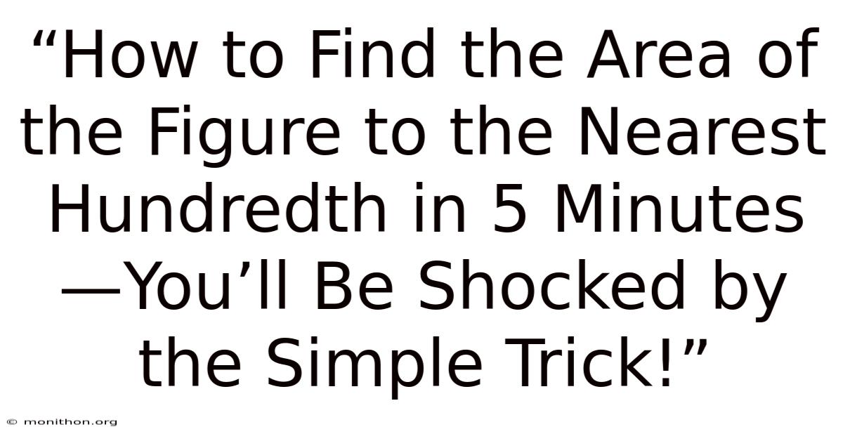 Finding the area of any figure and rounding it to the nearest hundredth isn’t a mystery—it’s a process. In practice, identify the shape, gather precise measurements, apply the right formula, keep full precision until the end, and then round with confidence. Avoid the usual pitfalls—early rounding, unit mix‑ups, and missed subtractions—and you’ll consistently land on the right answer Surprisingly effective..