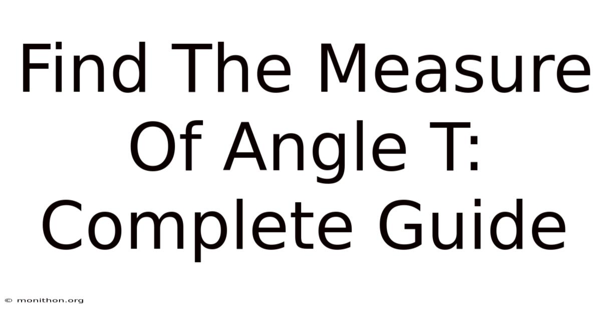 You’re staring at a diagram. In real terms, there’s a triangle, maybe a few intersecting lines, and somewhere in the mix is a little letter t sitting inside an angle arc. The prompt is blunt: find the measure of angle t. Which means it sounds like a simple request, but half the time, people freeze because they don’t know where to start. Turns out, it’s rarely about guessing. It’s about reading the diagram like a map Worth keeping that in mind..