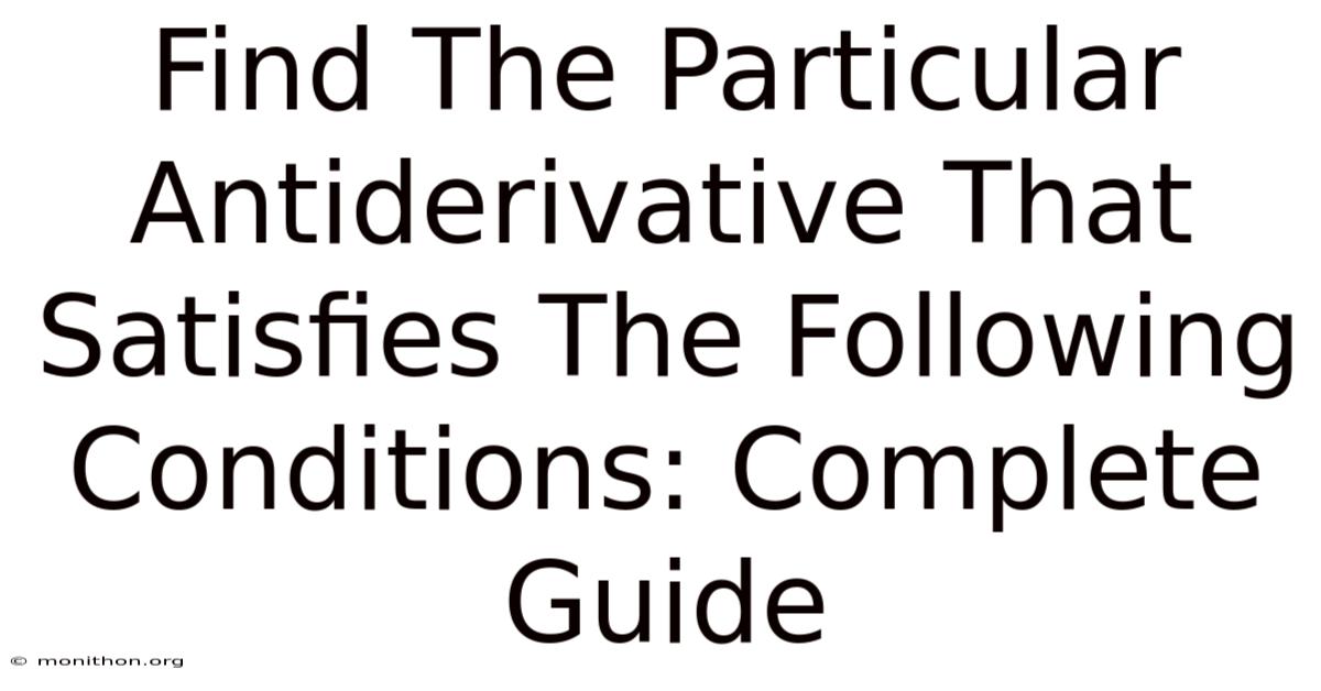 The short version: mastering particular antiderivatives hinges on integrating accurately, applying the given condition to determine the constant of integration, and verifying the result through differentiation. Avoiding common pitfalls, attending to algebraic details, and practicing with diverse problems will transform this technique from a procedural task into a reliable tool for solving real‑world problems Easy to understand, harder to ignore. That alone is useful..
