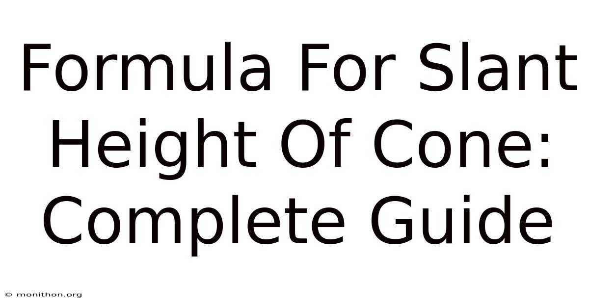Ever tried to figure out how tall the side of a cone is without measuring it directly? You're not alone. Whether you're working on a geometry homework problem, designing a lampshade, or building a party hat, knowing the slant height of a cone is surprisingly useful — and surprisingly easy to calculate once you know the trick The details matter here..