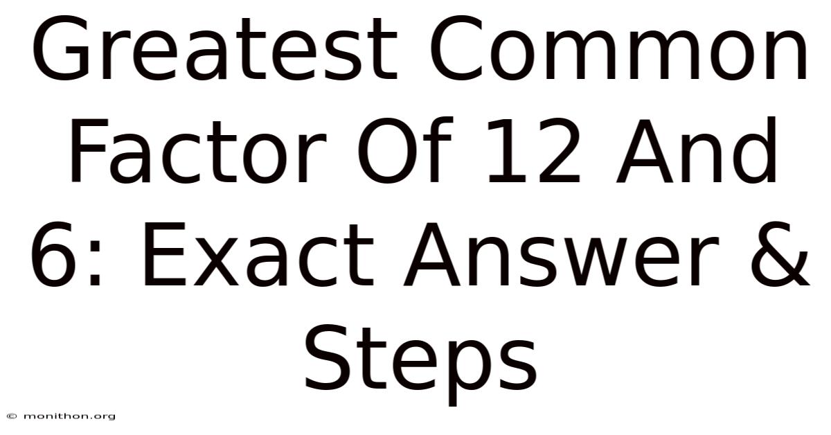 Ever stared at a math problem, felt a tiny panic rise, and thought, "Why do I need to know this?But then I realized: **the GCF isn't just a classroom exercise; it's a fundamental tool hiding in plain sight, silently shaping how we split things, simplify things, and understand relationships between numbers.It sounded like one of those abstract concepts that only exist to torture students. On top of that, " That's exactly how I felt when first introduced to the Greatest Common Factor (GCF). ** Let me show you why understanding the GCF of 12 and 6 isn't just useful – it's genuinely powerful Worth keeping that in mind..