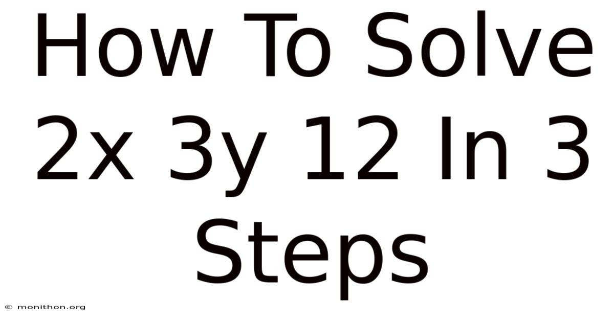 2x + 3y = 12. Subtract 2x from both sides:3y = -2x + 12. - Divide by the coefficient of y. Divide every term by 3: