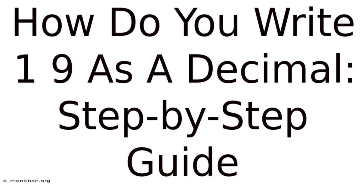 So, how do you write 1.Here's the thing — 9 as a decimal? It’s simple, but it’s a skill that pays off in so many ways. Whether you’re a student, a professional, or just someone who loves learning, mastering this helps you communicate better Which is the point..