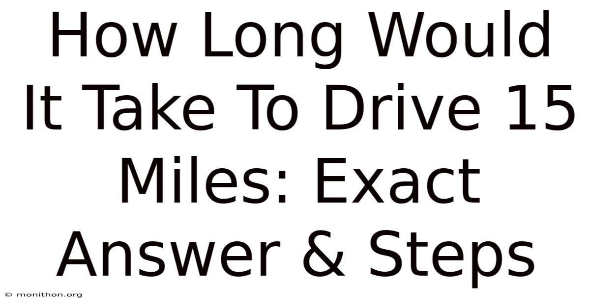 You’re staring at the map. Then the construction zone. Plus, then you hit the first red light. Fifteen miles. Twenty minutes, tops, right? And then the school drop-off line. Think about it: suddenly, that quick hop across town feels like it’s taking an hour. Here's the thing — it’s a moving target. It sounds like nothing. Worth adding: if you’ve ever asked yourself how long would it take to drive 15 miles, you already know the answer isn’t a single number. And that’s exactly why we need to talk about it.