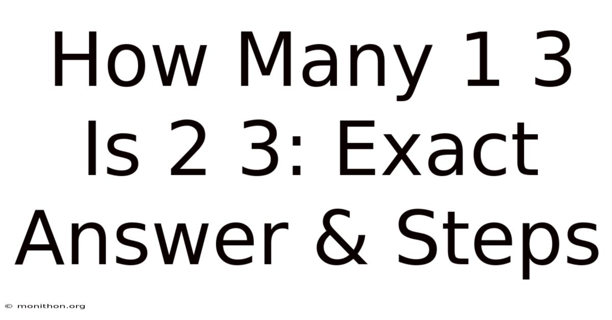 When you're asking "how many 1/3 is 2/3," you're really asking a division question in fraction clothing. You're trying to figure out how many times 1/3 goes into 2/3. Think of it like this: if you have 2/3 of something and you break it into pieces that are each 1/3 of the whole, how many pieces do you have?