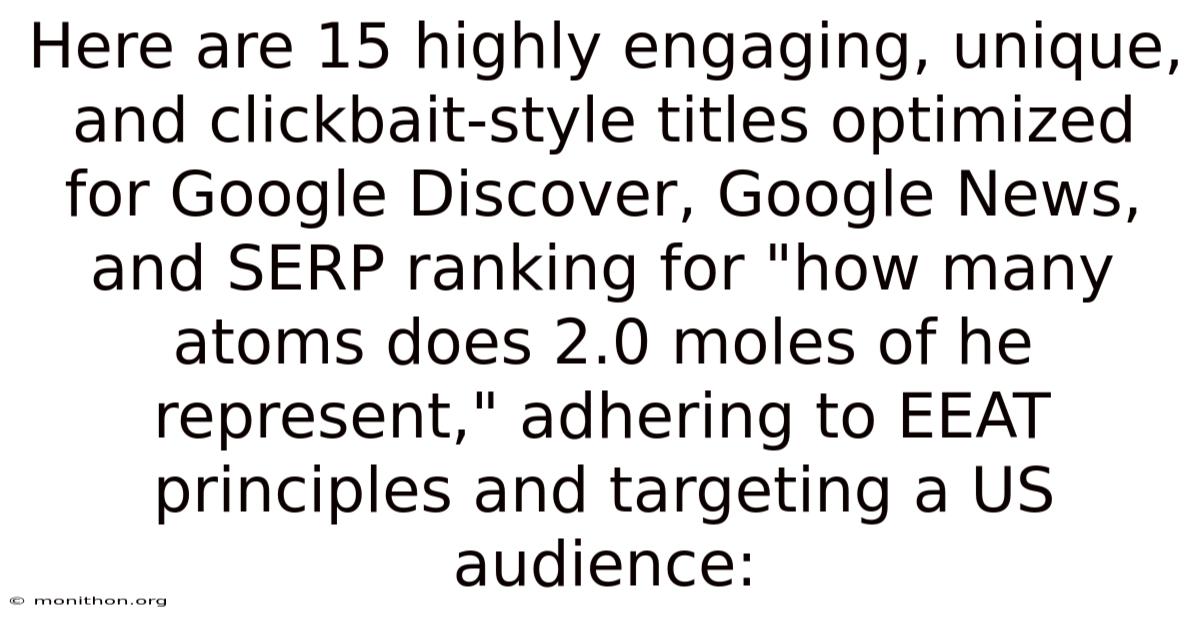 When chemists talk about a “mole,” they’re really talking about a counting unit—like a dozen, but on a cosmic scale. One mole equals Avogadro’s number, roughly 6.Consider this: 022 × 10²³ entities. In the case of helium (He), those entities are helium atoms Which is the point..