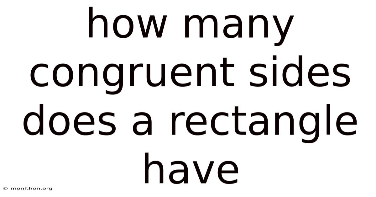 The answer to this question is straightforward but requires careful consideration. A rectangle has two pairs of congruent sides. This means that there are four sides in total, but they are divided into two groups of two congruent sides each. For instance, if a rectangle has sides measuring 6 cm, 6 cm, 4 cm, and 4 cm, the two 6 cm sides are congruent, and the two 4 cm sides are congruent. However, the 6 cm sides are not congruent to the 4 cm sides.