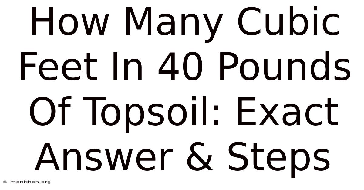 At first glance, the relationship between pounds and cubic feet might seem straightforward. After all, one pound of any substance can be roughly approximated by volume, but the nuances of density and measurement can complicate things. Soil, in particular, behaves differently than other materials, requiring a nuanced approach. A cubic foot of soil isn’t just a unit—it’s a concept rooted in physics, geometry, and practical application. That said, yet, for many, the task remains elusive. Even so, how many cubic feet are in 40 pounds of topsoil? The answer lies not just in formulas but in understanding the underlying principles that govern this transformation.