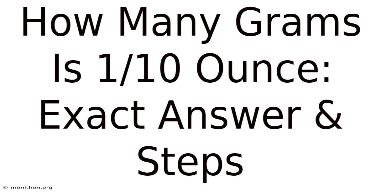 Ever looked at a recipe or a gold bar and wondered, "How many grams is 1/10 ounce?" You're not alone. Whether you're baking, weighing precious metals, or just curious, converting ounces to grams is one of those little skills that comes in handy more often than you'd think It's one of those things that adds up. Simple as that..