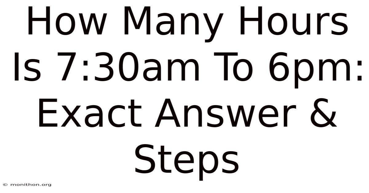 Q: Is 7:30am to 6pm exactly 10 hours? A: No, it's 10 hours and 30 minutes. The extra 30 minutes comes from starting at 7:30 instead of 8:00.