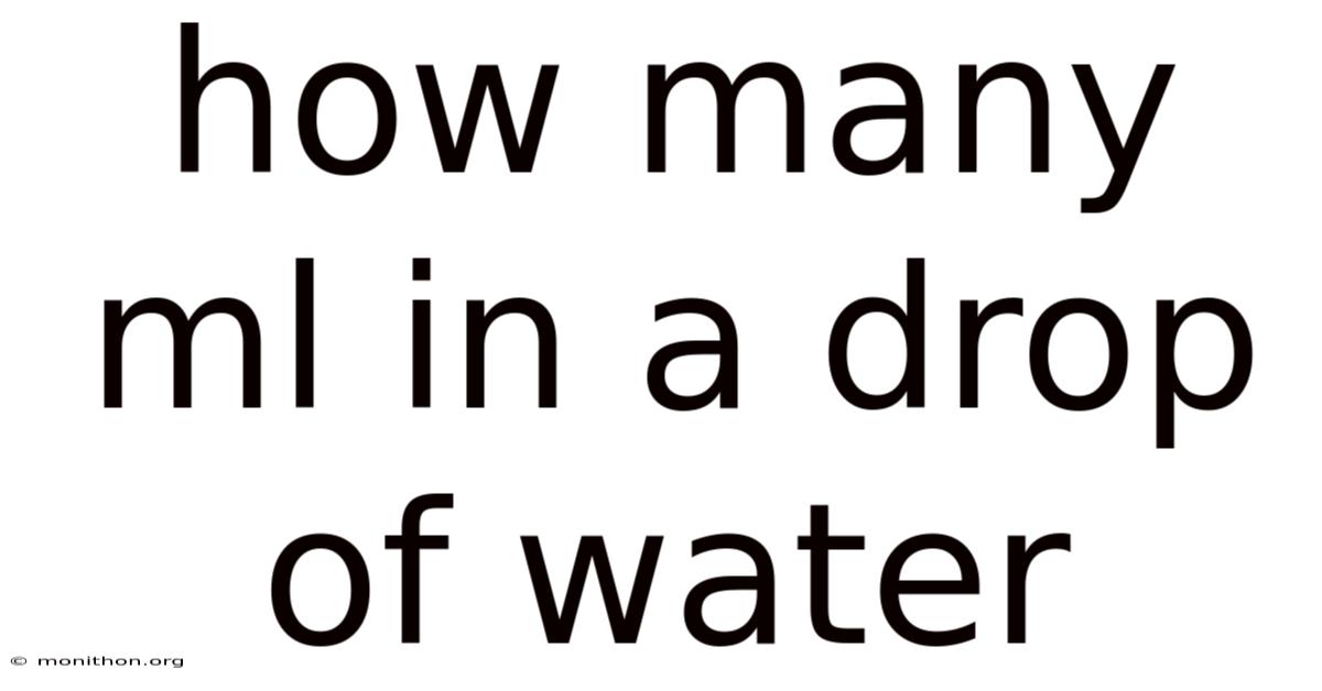 - How many milliliters are in a drop of water? The answer is typically around 10 microliters, which is equivalent to 0.01 milliliters.