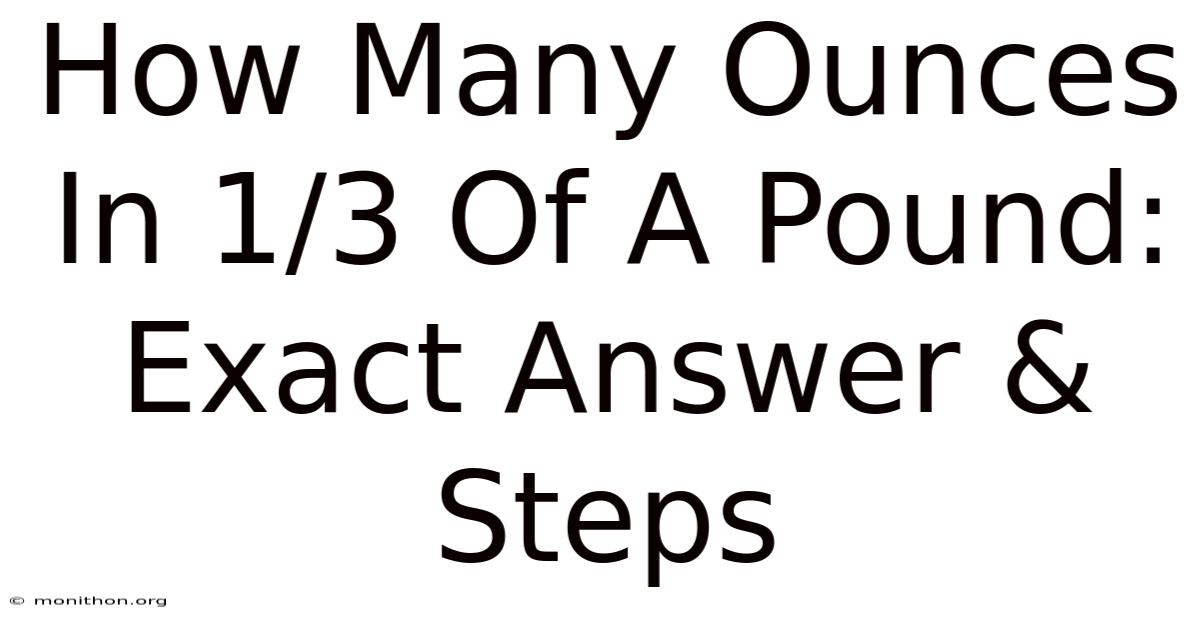 A full pound contains 16 ounces. If you take one‑third of that, you’re essentially dividing 16 by 3. But the result is approximately 5. 33 ounces. In fractional terms, that’s 5 ⅓ ounces, which many people round to about 5.3 ounces for practical purposes The details matter here..