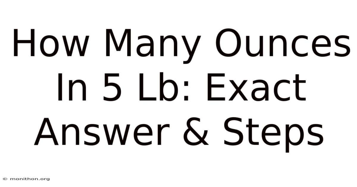 Is 5 lb exactly 80 ounces? Yes. Since one pound equals sixteen ounces, five pounds is exactly eighty ounces. No rounding needed.