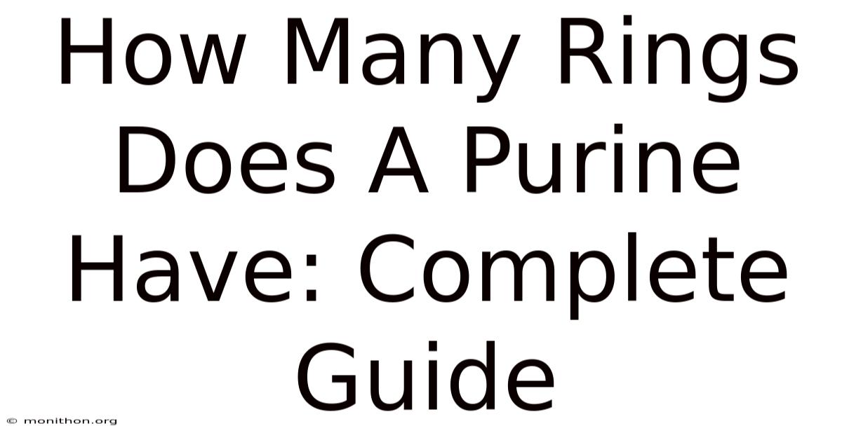 How many rings does a purine have? A purine has two rings: one six-membered and one five-membered, fused together And that's really what it comes down to. Took long enough..