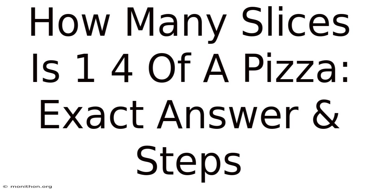 See the pattern? Practically speaking, the most common, reliable scenario is a medium or large pizza cut into 8 slices. In that case, 1/4 of a pizza is 2 slices. But you have to check your specific pie That alone is useful..