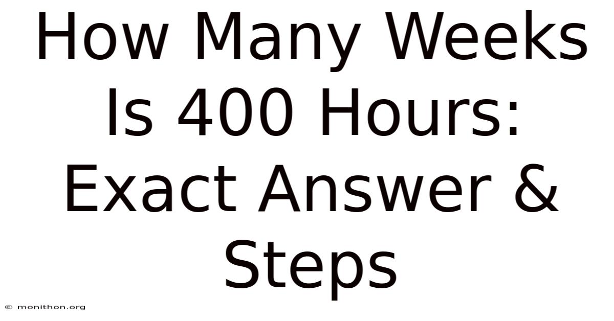 Ever tried to figure out how many weeks 400 hours actually is—and then felt like you needed a calculator, a calendar, and a nap just to get there? You're not alone. Whether you're tracking work hours, planning a project, or just curious, converting hours into weeks can feel trickier than it should be.