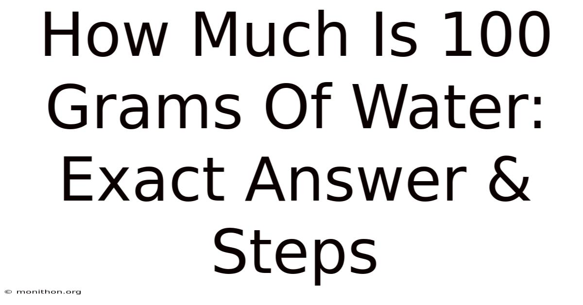 Understanding that 100 grams of water equals 100 milliliters isn’t just a neat fact—it’s a practical tool that bridges kitchen science, fitness tracking, and laboratory precision. Also, keep a measuring cup or a scale close, and you’ll manage recipes, hydration plans, and experiments with confidence. The next time you reach for that 100‑gram label, you’ll know exactly how much liquid you’re dealing with—and that’s a small win in a world full of numbers Small thing, real impact..