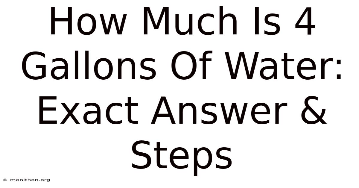 Four gallons might sound like a vague number at first, but once you break it down—512 fluid ounces, 15 liters, a half‑ton of weight—you can actually see it, lift it, and use it without a second guess. Which means whether you’re planning a hike, mixing a brine, or just trying to stop a leaky faucet from draining your water bill, that concrete sense of volume makes all the difference. So next time you hear “four gallons,” you’ll know exactly what you’re dealing with—and you’ll be ready to measure, move, or manage it like a pro.